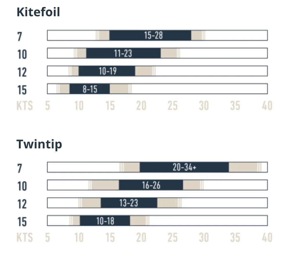 A titre indicatif , ces plages de vents dependent de votre niveau de pratique de votre poids